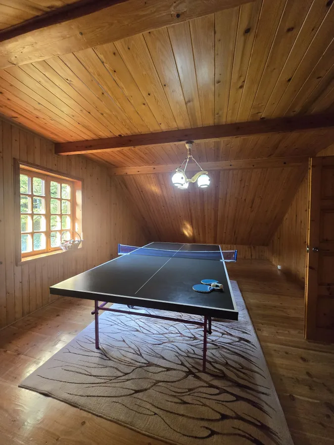 • Poziom 1 – 2 duże pokoje w tym jeden ze stołem do ping-ponga, łazienka