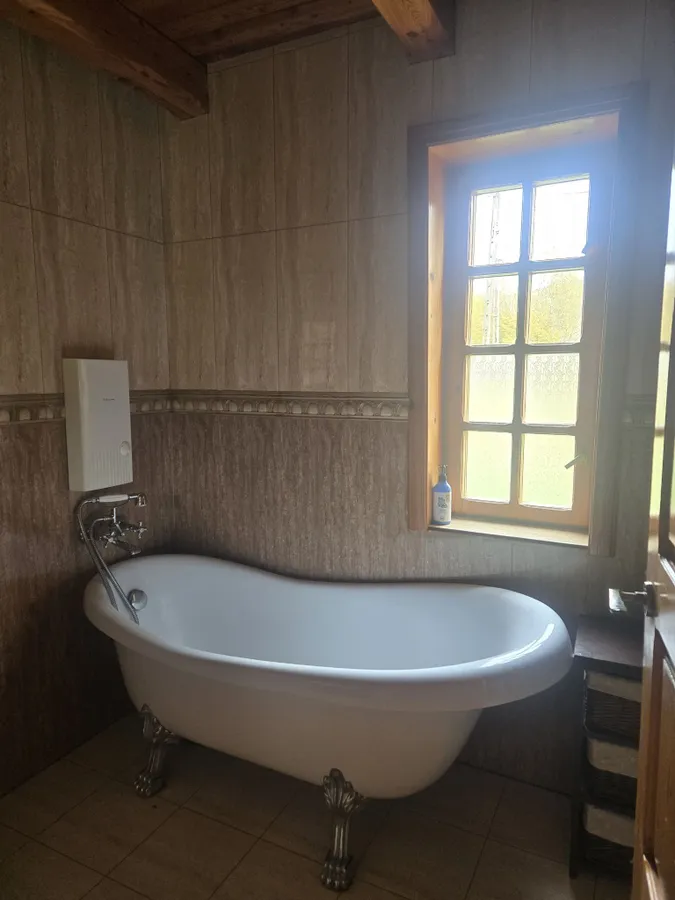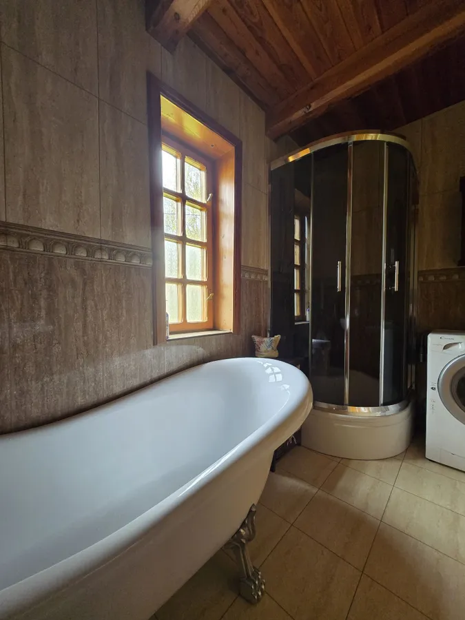 Stan budynku – bardzo dobry, pozostawiający duże możliwości adaptacji do wykorzystania jako dom jednorodzinny czy w celach komercyjnych. Warto podkreślić, ze dom był budowany na własne potrzeby, z dbałością o wykorzystanie najbardziej naturalnych materiałów, a nie niskim kosztem pod sprzedaż lub najem.